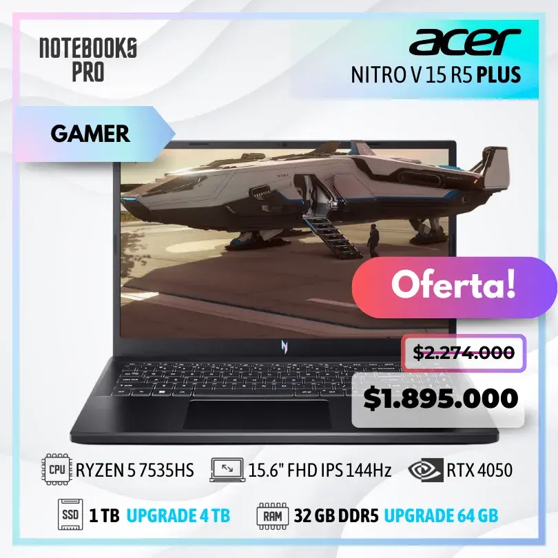 ACER NITRO V 15 R5 – RYZEN 5 7535HS – SSD 512 GB – 16 GB RAM DDR5 – RTX 4050 – 15.6″ FHD IPS 144Hz