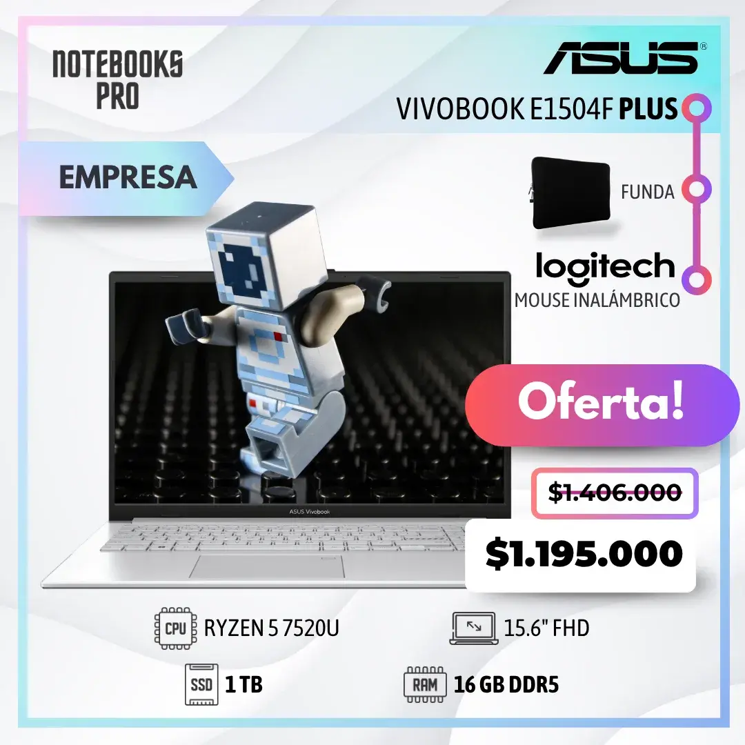 ASUS VIVOBOOK E1504F – RYZEN 5 7520U – SSD 512 GB – 16 GB RAM DDR5 – 15.6″ FHD – 4 Núcleos