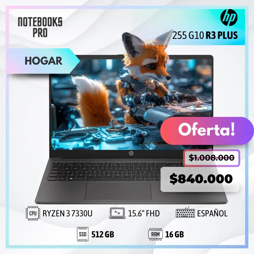 HP 255 G10 R3 – RYZEN 3 7330U – SSD 256 GB – 12 GB RAM – 15.6″ HD – Teclado Español – 4 núcleos