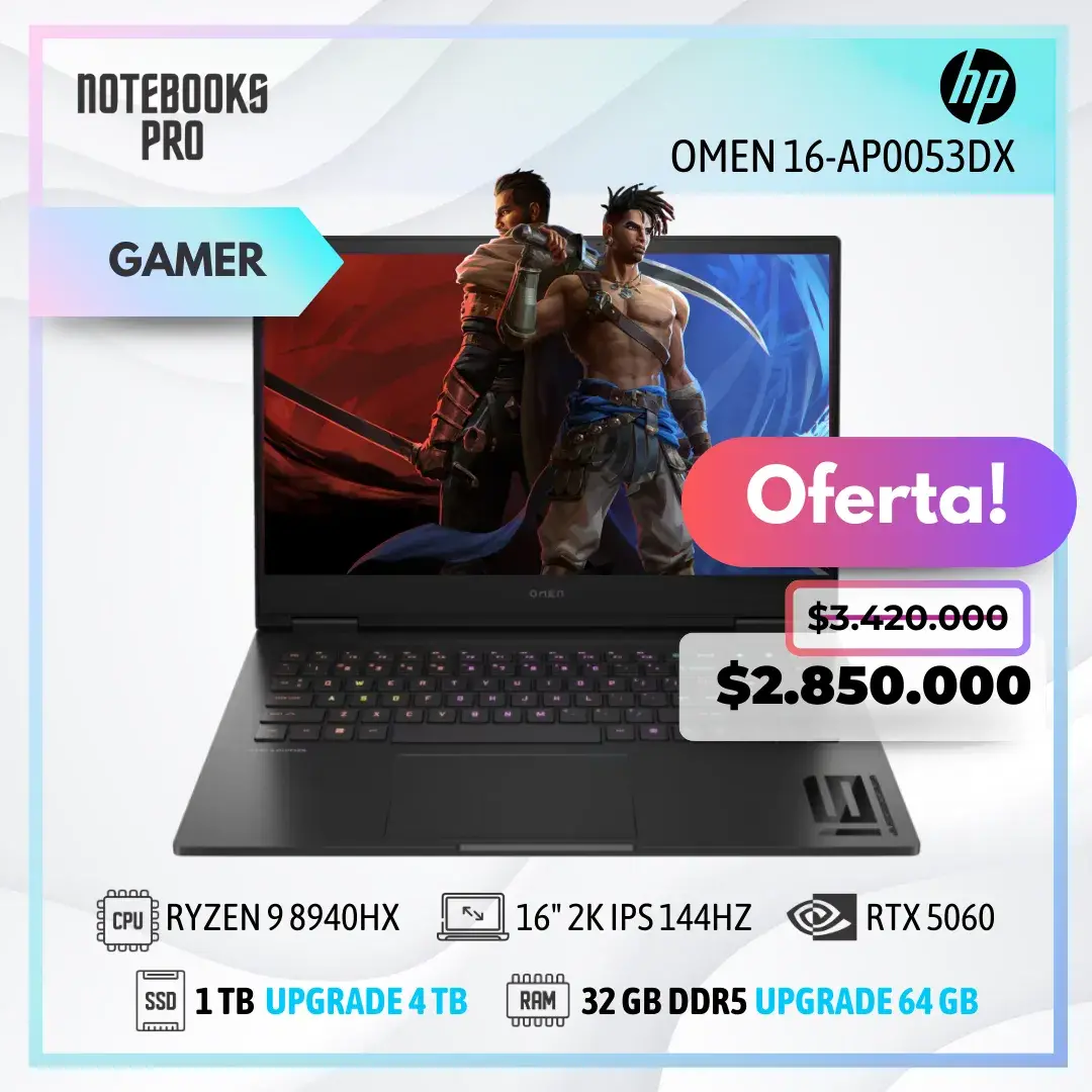 HP OMEN 16-AP0053DX PLUS – RYZEN 9 8940HX – SSD 2 TB – 64 GB RAM DDR5 – RTX 5060 – 16″ 2K IPS 144Hz