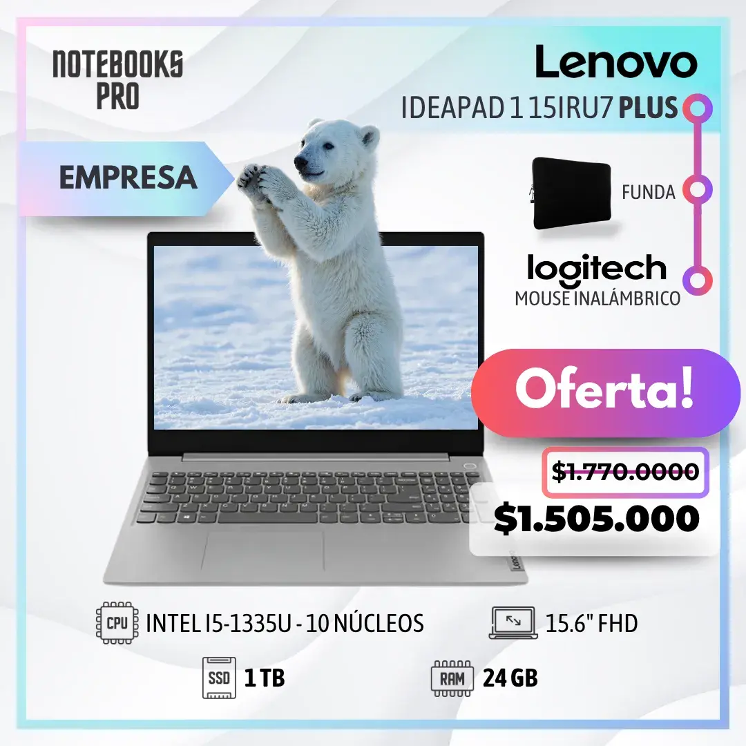 LENOVO IDEAPAD 1 15IRU7 PLUS – i5-1335U – SSD 1 TB – 24 GB RAM DDR4 – 15.6″ FHD