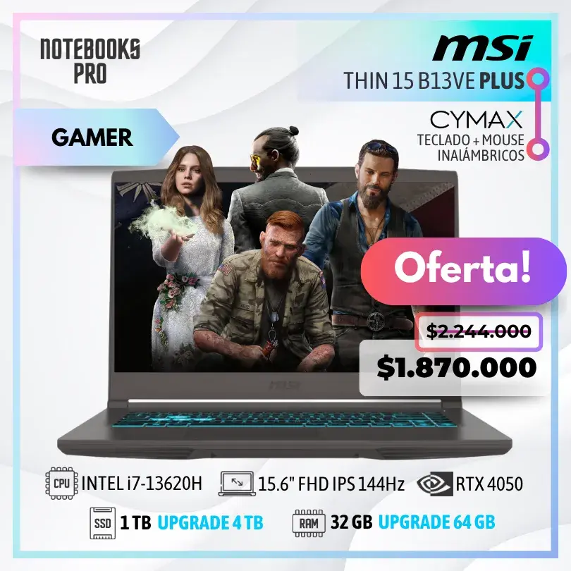 MSI THIN 15 B13VE – i5-13420H – SSD 512 GB – 16 GB RAM – RTX 4050 – 15.6″ FHD IPS 144Hz